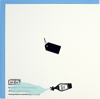 size: 140 x 140 mm (hold) card: bamboo paper envelope: kraft paper (brown) print colour: black&blue silk-screen printed by hand in japan price: 550yen (tax included)