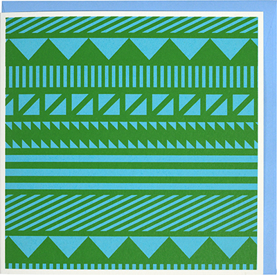 size: 140 x 140 mm (hold) card: bamboo paper envelope: kraft paper (brown) print colour: blue&green silk-screen printed by hand in japan price: 550yen (tax included)