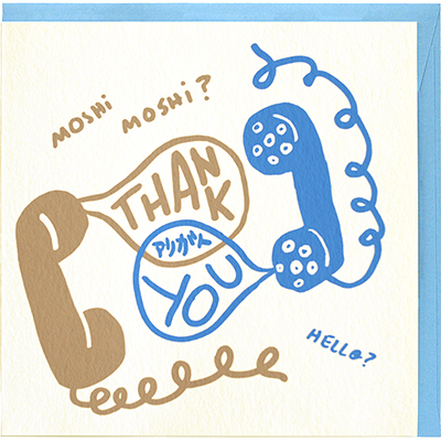 size: 140 x 140 mm (hold) card: bamboo paper envelope: kraft paper (brown) print colour: light blue&red silk-screen printed by hand in japan price: 550yen (tax included)