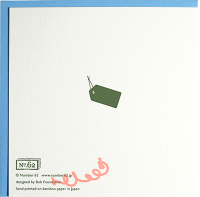 size: 140 x 140 mm (hold) card: bamboo paper envelope: kraft paper (brown) print colour: pink&green silk-screen printed by hand in japan price: 550yen (tax included)