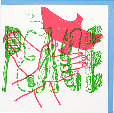 size: 140 x 140 mm (hold) card: bamboo paper envelope: kraft paper (brown) print colour: green&pink silk-screen printed by hand in japan price: 550yen (tax included)